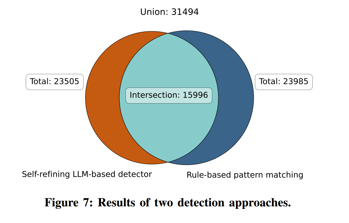 结果表明,LLM 法在降低误报方面更精确;规则法提供互补覆盖。两法结合能显著提升检测准确度。