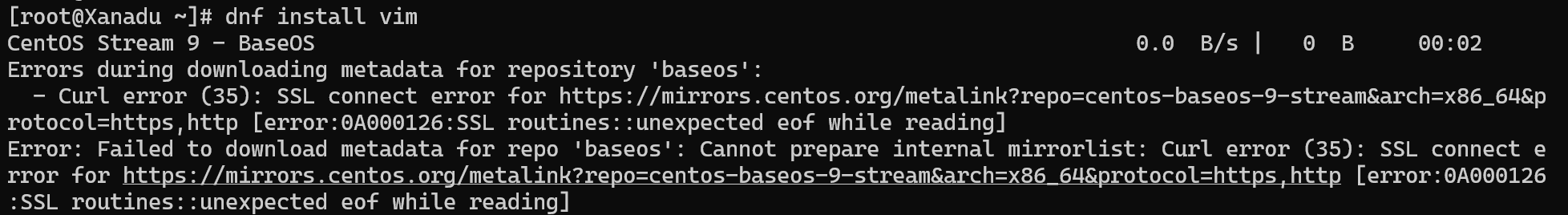 sudo dnf update换国内镜像源:https://www.cnblogs.com/LandWind/p/centos-stream-9-repo-set-aliyun.html